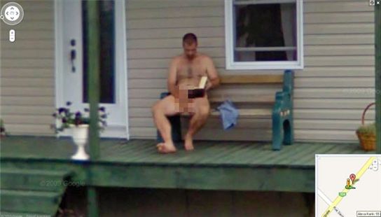[아시아경제 이진수 기자] 실제 길거리를 촬영해 웹 지도로 작성하는 과정에서 낯 뜨거운 사생활 침해 논란까지 불러일으키고 있는 구글 스트리트 뷰가 이번에는 캐나다에서 알몸으로 책 읽는 남성을 포착했다.이미지를 보면 의문의 사내는 자기 집 베란다 벤치 위에 알몸으로 앉아 독서하고 있다. 옆에는 벗어놓은 속옷이 놓여 있다.한 손으로 책을 들고 다른 한 손으로 주요 부위를 가리고 있는 게 그나마 다행이라고나 할까.25일(현지시간) 영국 타블로이드 신문 더 선에 따르면 사진은 퀘백주(州) 생기욤 외곽에서 촬영된 것으로 알려졌다.한편 며칠 전 옷도 입지 않은 채 자동차 트렁크 안으로 들어가는 독일 남성의 기이한 행동이 구글 스트리트 뷰의 카메라에 딱 걸린 바 있다.이는 독일 남서부 만하임의 주택가에서 찍힌 것이다.사내가 왜 그런 모습으로 찍혔는지 이견이 분분하지만 사내의 자동차, 주소, 얼굴까지 공개된 상황이라 사생활 침해 논란을 불러일으켰다.이진수 기자 commun@<ⓒ세계를 보는 창 경제를 보는 눈, 아시아경제(www.asiae.co.kr) 무단전재 배포금지>