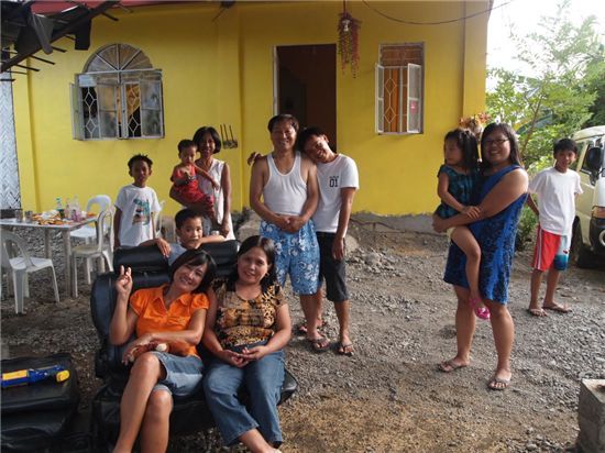국내에 다문화가족 20만명 시대가 머지 않았다. 우리나라에 살고 있는 다문화가족은 현재 17만명에 육박한다. 중국 조선족과 한족 외에 베트남과 필리핀 출신이 가장 많고, 특히 결혼을 위해 이주한 여성으로 생겨난 다문화가족이 대다수다. '코리안 드림(Korean Dream)'의 환상을 안고 한국에서 제2의 삶을 살고 있는 수십만의 다문화가족. 생소한 언어와 판이한 문화, 경제적 궁핍 속에서 저마다의 가정을 꾸리고 대한민국의 일원으로 꿋꿋이 살아가면서도 늘 고향을 방문하는 꿈을 꾸는 다문화가족을 위해 제주항공과 여성가족부 위탁 기관(전국다문화가족사업지원단)이 손을 잡았다. 제주항공의 마닐라ㆍ세부 등 필리핀 2개 노선 신규 취항을 기념해 특별히 마련된 다문화가족 고향 방문 지원 프로그램. 그 감동적인 현장을 본지 기자가 이틀 동안 함께 했다.필리핀 마닐라 시내에서 차로 4시간여 떨어진, 델마 C. 베게라 씨 부모님이 살고 있는 친정집의 모습. 오래된 고목나무를 사이에 두고 나란히 마주한 가건물에서 델마 씨의 친정어머니와 아버지, 막내 동생이 생활을 하고 있다. 6년 만에 고향에 온 델마 씨를 보러 인근 마을에 모여 사는 형제자매와 사촌들이 한자리에 모였다. 사진 너머로 델마 씨가 남편 송진웅 씨와 한푼 두푼 모은 돈으로 크리스마스 때 고향에 선물한 현대자동차 승합차가 보인다.