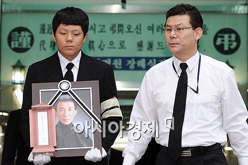 [스포츠투데이 이기범 기자]2일 오전 서울 쌍문동 한 장례식장에서 뇌출혈 투병 끝에 별세한 원로배우 트위스트 김(본명 김한섭)의 발인식이 엄수되고 있다.스포츠투데이 이기범 기자 metro83@<ⓒ아시아경제 & 재밌는 뉴스, 즐거운 하루 "스포츠투데이(stoo.com)">