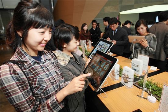 [아시아경제 조성훈 기자]KT가 아이패드를 활용한 모바일오피스 사업에 나선다. 경쟁사인 SK텔레콤도 갤럭시탭 기반 B2B사업에 박차를 가하고 있어 태블릿발 기업고객 확보전쟁이 본격화될 전망이다.KT(대표 이석채)는 2일 서울 광화문 사옥에서 이상훈 기업고객부문 사장 주관으로 기자간담회를 갖고 아이패드에 적용되는 보험영업과 증권영업, 병원, 모바일그룹웨어 등을 공개했다.보험영업 솔루션의 경우 보험견적, 판매, 청약 등을 아이패드에서 처리할 수 있으며 병원 솔루션은 전자의무기록, 영상저장시스템 등의 정보를 실시간으로 확인해 신속한 진료가 가능하도록 한 것이 특징이다. KT는 보험사, 증권사, 의료기관을 위한 태블릿PC 솔루션은 이미 개발을 완료했으며, 외식업, 교육, 부동산 등 다양한 업종의 솔루션들은 개발을 진행 중이라고 밝혔다. 이상훈 사장은 “다양한 업종에서 적용할 수 있도록 태블릿PC 기반 솔루션 개발을 더욱 강화해 나갈 것”이라고 밝혔다. KT는 이와함께 연초 목표했던 기업고객대상 매출 3조 6000원, 모바일 오피스 고객 15만 순증을 무난히 달성할 것이라고 이날 밝혔다. 내년에는 클라우드 컴퓨팅을 적용한 ‘스마트 네트워크’를 통해 올해 보다 4000억원 증가한 4조원 이상으로 매출을 확대하는 동시에 솔루션이 적용된 모바일 오피스 고객도 40만 이상 순증을 목표로 하고 있다. U-시티, 에너지 솔루션, 디지털 사이니지(광고물), 기기간통신(M2M) 등 사업분야는 100% 성장시키겠다는 방침이다.앞서 KT는 지난 1월 27일 기업고객 시장의 성장전략인 ‘스마트(S.M.ART : Save cost, Maximize profit ART)’ 전략과 함께 ▲기업 ▲ 소호및 중기 ▲공공 ▲빌딩 ▲스마트존 ▲그린 등 6개 전략대상(스마트6)을 밝힌 바 있다.KT는 올해 스마트6 전 영역에서 1700여 건에 이르는 추진사례를 확보했다고 밝혔다. 스마트6의 대표적 구축사례로 KT는 전남 여수시 돌산읍 가두리양식장에 CCTV와 센서, 초음파 조류퇴치서비스를 접목해 철새들의 양식어류 포식을 방지한 사례를 꼽았다. 귀뚜라미보일러의 경우 KT 모바일오피스 도입 뒤 1인당 AS 처리가 두배 가량 늘어나는 등 업무효율이 크게 개선됐다고 덧붙였다.조성훈 기자 search@<ⓒ세계를 보는 창 경제를 보는 눈, 아시아경제(www.asiae.co.kr) 무단전재 배포금지>