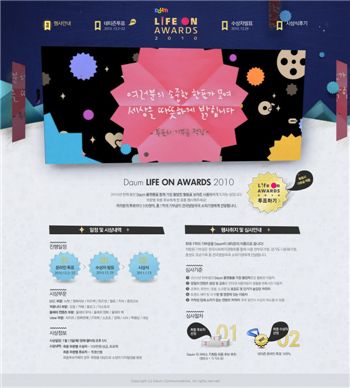 [아시아경제 서소정 기자]다음커뮤니케이션(대표 최세훈)은 올해 다음 서비스를 통해 양질의 콘텐츠를 생성·공유함으로써 다음 이용자들의 생활을 즐겁게 변화시킨 이용자를 선발하는 '2010 다음 라이프 온 어워드'를 진행한다고 3일 밝혔다. 2010 라이프 온 어워드는 한 해를 빛낸 이용자제작콘텐츠(UCC)를 네티즌들과 공유함으로써 그 당시의 감동과 행복, 웃음을 다시 한 번 나누자는 취지로 준비됐다. 수상부문은 ▲지식, tv팟, 텔존, 미즈넷, 미즈쿡, 영화리뷰, 증권고수를 선정하는 'UCC 부문' ▲요즘, 카페, 블로그, 티스토리 이용자 대상의 '커뮤니티 부문' ▲올해의 뮤직, 영화, 책 부문을 수상하는 '콘텐츠 부문' ▲라이프, 문화연예 등 각 영역에서 가장 뛰어난 활동을 펼친 블로거를 선발하는 'view부문' 등 총 4개다. 다음은 내부 심사위원단을 구성해 조회수, 추천수, 댓글, 스크랩 등의 지표와 활동성이 높은 이용자를 후보로 선정했다. 최종 수상자는 네티즌들의 투표에 의해 결정된다. 다음 사용자라면 누구나 오는 22일까지 해당 홈페이지(//)를 통해 각 부문별 최고의 이용자를 선정하는 온라인 투표에 참여할 수 있다. 수상자는 이번달 29일 발표될 예정이다. 각 부문별 수상자에게는 1월 13일에 열릴 시상식에서 현금 100만원과 트로피를 수여하고, view 대상 수상자에게는 500만 원을 제공할 계획이다.이번 행사는 네티즌이 투표에 참여함과 동시에 나눔의 따뜻함을 느낄 수 있도록 한 것이 특징이다. 네티즌이 투표할 때마다 1표에 100원씩 적립해 다음이 최대 1억원을 대신 기부할 예정이다. 이를 통해 모인 금액은 시상식에서 한국사회복지관협회에 기부금으로 전달된다. 윤정하 다음 브랜드마케팅팀장은 "이번 행사는 다음이 추구하는 '라이프 온 다음'이라는 비전에 맞게 올 한 해 동안 우리의 생활을 편리하고, 즐겁게 해준 이용자들을 선정·축하하는 자리로 진행될 것"이라고 말했다.서소정 기자 ssj@<ⓒ세계를 보는 창 경제를 보는 눈, 아시아경제(www.asiae.co.kr) 무단전재 배포금지>