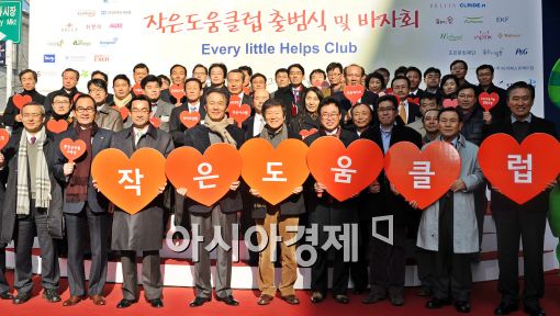 [아시아경제 이재문 기자]3일 서울 홈플러스 영등포점에서 54개의 대표적인 기업, NGO, 재단, 연구소, 협회 등이 국내 최초의 네트워크형 사회공헌 연합체 '작은 도움 클럽(Every Little Helps Club)'을 공식 출범 했다. 이승한 홈플러스 회장 등 주요 참석 인사들이 발족식을 갖고 있다.이재문 기자 moon@<ⓒ세계를 보는 창 경제를 보는 눈, 아시아경제(www.asiae.co.kr) 무단전재 배포금지>