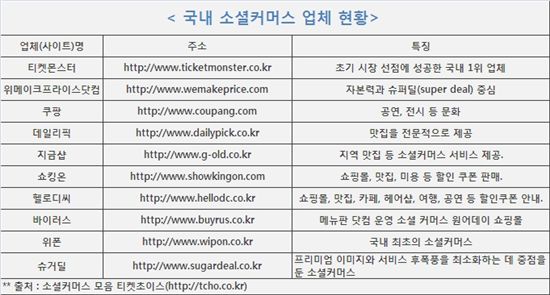 새 쇼핑트렌드 급부상…사업아이템 각광국내 1위 '티켓몬스터' 비롯 100여개 달해'싼가격'보다 상품·서비스질이 더욱 중요