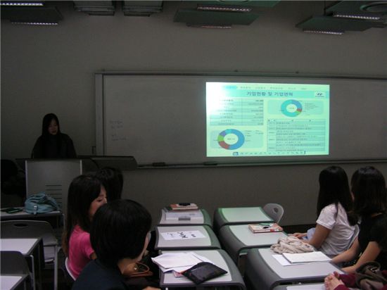 이화여대 가치투자동아리 소속 학생들이 현대자동차의 기업가치에 대한 세미나를 하고 있다. EIA는 일주일에 한 번 세미나를 갖고 서로 피드백도 나눈다.