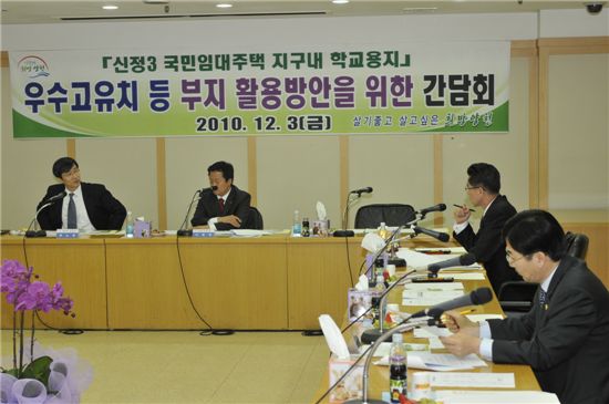 참석자 대부분은 양천구의 특목고 진학률 1위 명성에 걸맞은 교육인프라를 충족하고 목동과 비목동의 교육 불균형을 해소할 수 있는 특목고 유치를 위해 노력해 줄 것을 교육청에 요구했다.이에 서울시 교육청은 특목고 인가가 교육정책과 맞지 않아 어렵겠지만 지역에 꼭 필요한 학교가 무엇인지 찾아보고, 그래도 어려울 경우 유아교육진흥원과 같은 교육 관련 시설 유치를 위해 함께 노력해야 함을 피력했다.이제학 양천구청장은 “오늘 간담회의 가장 큰 성과는 신정3 국민임대주택 지구 내 학교부지를 존치할 수 있게 됐다"면서 "특히 교육청에서도 대화의 문을 열고 함께 노력하겠다고 한 것”이라며 참석자 모두 한마음 한 뜻임을 확인했다. 2시간에 걸쳐 진행된 간담회에서는 양천구가 원하는 특목고 유치라는 확답을 얻어내지 못하는 아쉬움이 남았지만 이를 위해 SH공사, 서울시 교육청 등으로부터 지지를 얻어냄으로써 양천구민의 교육 열망을 실현할 기반을 확고히 하게 됐다.박종일 기자 dream@<ⓒ세계를 보는 창 경제를 보는 눈, 아시아경제(www.asiae.co.kr) 무단전재 배포금지>