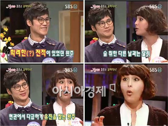 [스포츠투데이 강경록 기자]배우 이유진이 남편 김완주의 술주정 만행을 폭로했다.이유진은 10일 밤 SBS '스타부부쇼 자기야'에 남편 김완주와 함께 출연해 남편의 만행을 폭로했다.이유진은 "남편이 술을 참 좋아한다"며 "술만 먹고 오면 나를 덮치는데 이것은 애정표현이 아닌 레슬링이다"며 시작했다.이어 "술을 먹은 상태에서 남자 완력으로 덮지면 너무 아프다. 그래서 남편을 밀쳐내면 앉아서 울기 시작한다. 그러고 남편이 '네가 좋아서 그러는데 왜 밀쳐내냐'며 투정한다"고 말했다.이어 또 이유진은 "그러고 나서 배가 고프다며 밥 타령을 시작한다"고 연이어 폭로했다. "신혼여행가서 원주민들이 OK춤을 춘 적이 있는데 남편이 밥을 먹고 나면 기분이 좋아 OK춤을 춘다"고 말하자 남편의 표정이 굳어졌다.폭로는 계속됐다. "어느날 자고 있는데 갑자기 남편이 들어와 큰소리로 '큰일났어. 오줌쌌다'고해 여기저기 살펴보았는데 아무데도 흔적이 없었다"며 "물어보니 남편이 '현관 앞'이라고 했다"고 폭로전이 이어졌다.남편은 "대리기사를 불렀는데 여자 분이라 급해도 말도 못했다"며 "겨우 도착해 엘리베이터를 탔는데 도저히 못 참고 엘리베이터 내리자마자 현관 앞에 쌌다"며 변명하더라고 해 주위를 폭소케 했다.이어 이유진이 "냄새나니깐 빨리 치워"라고 하니 "남편의 대답이 겨울이라 추워서 냄새안나라고 하더라"며 어이없어 했다.한편 이날 방송에는 이무송 노사연 부부, 최양락 팽현숙 부부, 배동성 안현주 부부, 김수용 김진아 부부, 김완주 이유진 부부, 품절남녀 이경래, 김태훈, 이경애, 김미진이 출연해 거침없는 입담을 과시했다.스포츠투데이 강경록 기자 rock@<ⓒ아시아경제 & 재밌는 뉴스, 즐거운 하루 "스포츠투데이(stoo.com)">