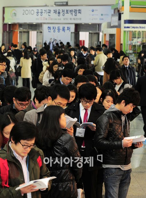 [아시아경제 윤동주 기자] 22일 서울 강남구 대치동 서울무역전시장에서 열린 '2010 공공기관 채용정보박람회'에 많은 구직자들이 입장을 기다리고 있다. 23일 까지 열리는 이번 박람회는 284개 공공기관이 1만여 명의 정규직을 뽑을 예정이다.윤동주 기자 doso7@<ⓒ세계를 보는 창 경제를 보는 눈, 아시아경제(www.asiae.co.kr) 무단전재 배포금지>