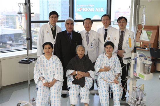 [아시아경제 신범수 기자]인하대병원 직원들이 자발적 모금활동을 통해 희귀난치성 질병으로 고생하는 고려인 3명에게 새 삶을 선사했다. 인하대병원은 양 쪽 눈이 모두 실명위기에 처한 우즈벡의 고려인 김 베라(여, 82, 사진 앞줄 가운데) 씨 등 3명을 국내로 초청, 무료 수술을 시행했다. 이들은 인하대병원 측이 우즈벡으로 해외의료봉사를 나갔다가 만난 환자들로 현지에서 수술이 어려운 희귀난치병을 앓고 있다. 박승림 인하대병원 의료원장(사진 뒷줄 가운데)은 "해외의료봉사를 일회성 진료로 끝내지 않고 지속적인 혜택을 제공해야 한다는 취지에서 이들을 국내로 초청했다"며 "특히 직원들의 자발적 모금활동을 통해 수술을 끝마치게 돼 더욱 의미가 깊다"고 말했다. 김 베라 씨 외에도 심장병을 앓고 있는 호루시다(여, 18, 사진 앞줄 오른쪽) 양이 심방중격 결손수술을, 딜바르(여, 43, 사진 앞줄 왼쪽) 씨는 고관절 인공치환술을 받고 최근 우즈벡으로 돌아갔다. 전업주부인 딜바르 씨는 수술을 마치고 "사랑하는 가족들과 함께 올바른 걸음걸이로 아름답게 걸으며 여행을 하고 싶다"고 말했다고 병원 측은 전했다. 신범수 기자 answer@<ⓒ세계를 보는 창 경제를 보는 눈, 아시아경제(www.asiae.co.kr) 무단전재 배포금지>