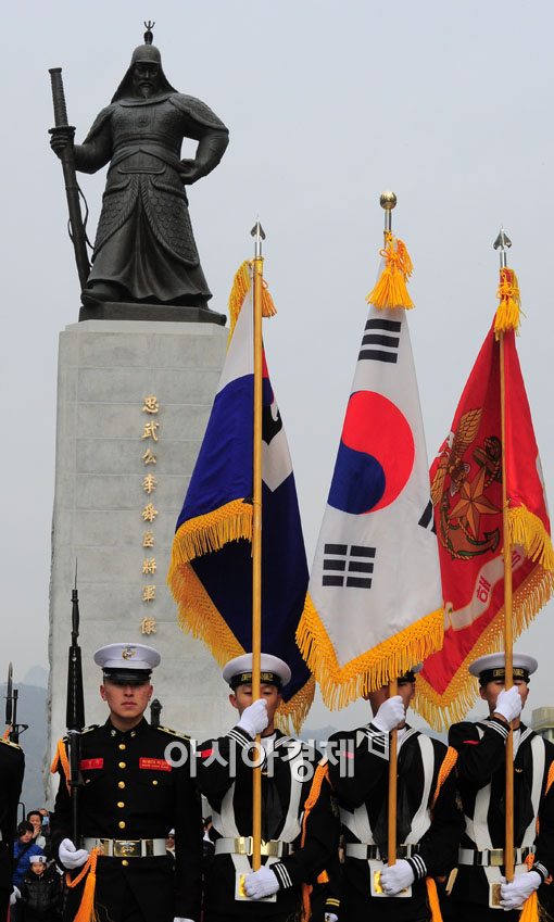 [아시아경제 윤동주 기자] 23일 서울 광화문 광장에서 열린 이순신 장군 동상 귀환 축하 행사에서 해군·해병대 의장대가 멋진 의장 시범을 보이고 있다.윤동주 기자 doso7@<ⓒ세계를 보는 창 경제를 보는 눈, 아시아경제(www.asiae.co.kr) 무단전재 배포금지>