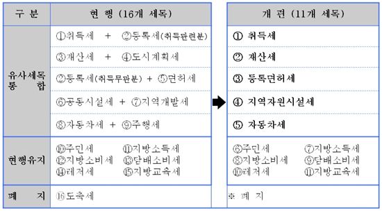 지방세 세목체계 간소화 내역 / 서울시<br />
