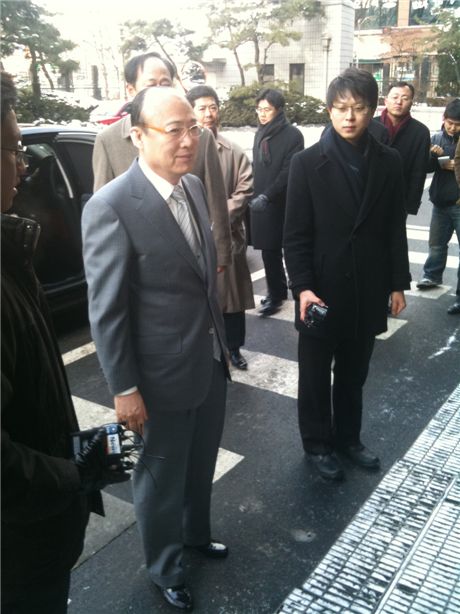 ▲ 김승연 한화 그룹 회장이 30일 오전 11시 43분께 서울 서부지검에 출두하고 있다.<br />