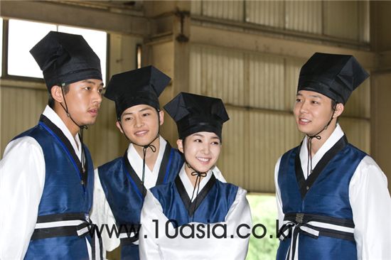From left, main cast of KBS TV series "SungKyunKwan Scandal" Yu A-in, Song Joong-ki, Park Min-young and Park Yuchun. [Chae Ki-won/10Asia]