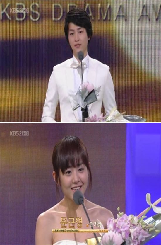 [스포츠투데이 조범자 기자]송중기와 문근영이 KBS 남녀 인기상을 수상했다.송중기와 문근영은 31일 오후 서울 여의도 KBS신관 TV공개홀에서 열린 '2010 KBS 연기대상'에서 남녀 인기상을 수상했다.'성균관 스캔들' 송중기는 "아까 신인상 후보에 없어서 속상했거든요"라고 말해 웃음을 자아낸 뒤 "외할머니가 눈이 불편해서 손자 얼굴도 평생 못보셨는데 할머니! TV 보고 계시죠? 소리 더 크게 하셔서 들어주세요"라고 말하며 울먹였다.'신데렐라 언니'에서 까칠한 은조 역을 열연한 문근영은 "제가 상을 받을까 받지 못할까 맘 졸였을 팬들께 감사드리고 사랑에 보답할 수 있도록 열심히 연기하겠습니다"며 "사랑받기 위해 연기하는 사람보다는 연기하기 때문에 사랑받는 사람이 되도록 하겠습니다"고 수상 소감을 말했다.인기상에는 박유천 송중기 윤시윤 장혁 정지훈 김유정 문근영 박민영 이나영 이시영 한은정이 후보에 올랐었다.스포츠투데이 조범자 기자 anju1015@<ⓒ아시아경제 & 재밌는 뉴스, 즐거운 하루 "스포츠투데이(stoo.com)">
