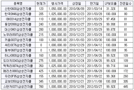 대부분 지난달 상장돼 잔존만기 길어..삼성전자 100만원 징크스도 한몫