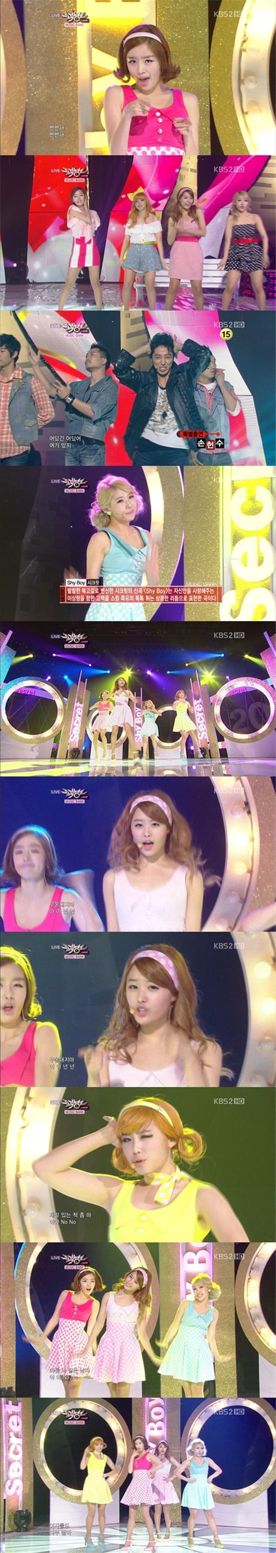 [스포츠투데이 최준용 기자]걸그룹 시크릿이 컴백 무대를 통해 색다른 매력을 과시했다.시크릿은 7일 생방송으로 진행된 KBS2 '뮤직뱅크'에 출연해 새 싱글앨범 타이틀 곡 ‘샤이보이’를 공개했다. 이날 시크릿은 60년 대 미국에서 유행하던 복고풍의 의상과 헤어로 시선을 사로잡았다. 아울러 기존 앨범을 통해 보여줬던 섹시한 모습과 다른 귀여운 표정과 깜찍한 댄스로 색다른 매력을 공개했다. 특히 개그맨 손헌수가 함께 무대에 올라 즐거움을 선사했다.여기에 무대 중간 선보인 깜찍한 아기새 춤은 벌써부터 히트를 예감케 했다.히트 작곡가 강지원-김기범이 의기투합해 완성한 ‘샤이보이’는 경쾌한 스윙 리듬이 인상적인 댄스곡으로, 톡톡 튀는 리듬이 강한 인상을 줬다. 여기에 귀여움을 강조한 시크릿 멤버들의 스타일링이 음악의 분위기를 한층 업그레이드 시켜주고 있어 팬들의 뜨거운 반응을 얻고 있다.한편 시크릿은 8일 MBC ‘쇼! 음악중심’, 9일 SBS ‘인기가요’를 통해 컴백 무대를 이어갈 계획이다.스포츠투데이 최준용 기자 yjchoi01@<ⓒ아시아경제 & 재밌는 뉴스, 즐거운 하루 "스포츠투데이(stoo.com)">