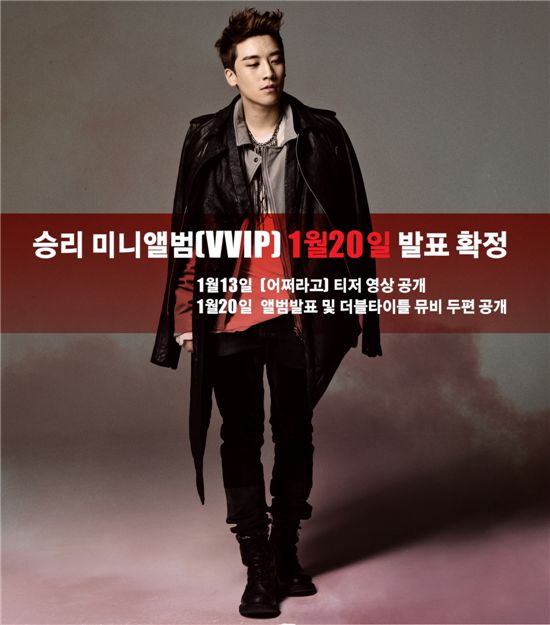 [스포츠투데이 박건욱 기자]그룹 빅뱅의 멤버 승리의 솔로앨범 일정이 확정됐다. 소속사 YG엔터테인먼트 측은 10일 공식홈페이지에 "승리의 솔로 미니앨범 'VVIP'가 오는 20일 공개된다"고 밝혔다. 승리는 이번 앨범활동에서 'VVIP'와 '어쩌라고' 더블타이틀로 활동할 예정이다. 특히 그는 두 타이틀 곡을 비롯해 'MAGIC'. 'I KNOW', 'WHITE LOVE' 등 수록곡 전반에 걸쳐 작곡과 작사 작업에 참여했다. 특히 'I KNOW'에서는 최근 '국민 여동생'으로 떠오른 아이유와 호흡을 맞춰 눈길을 끈다. 한편 승리는 오는 13일 '어쩌라고' 티저영상을 공개하며, 20일에는 더블타이틀 곡 뮤직비디오 두 편이 공개한다. 스포츠투데이 박건욱 기자 kun1112@<ⓒ아시아경제 & 재밌는 뉴스, 즐거운 하루 "스포츠투데이(stoo.com)">
