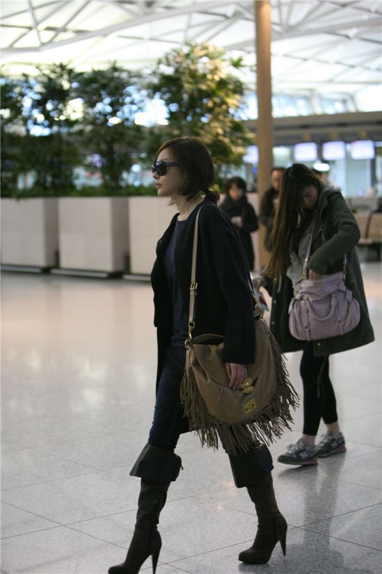 [스포츠투데이 고재완 기자]‘패셔니스타 김아중이 또 한 번 우월한 공항패션을 자랑해 눈길을 끌었다.김아중은 지난 11일 오전 현재 방영중인 SBS 수목드라마 ‘싸인(Sign)’ 의 일본 히로시마 현지 로케이션 촬영 및 현지 기자발표회 참석을 위해 인천국제공항에 도착했다.그는 꾸미지 않은 듯 하지만 특유의 패션 감각이 돋보이는 공항패션을 선보이며, 이른 아침 공항을 찾은 많은 관광객들의 시선을 한 몸에 집중시켰다. 그는 블랙의 코트와 네이비 컬러의 라운드 니트, 스키니 진에 웨스턴 풍의 베이지 색 숄더 백 등 편안한 느낌의 ‘이지 룩(Easy Look)’을 선보였다. 또 스팽글 느낌의 큐빅 장식이 포인트 된 선글라스로 코디를 마무리하며, 스타일리시한 매력을 물씬 풍겨냈다.김아중은 극중, 꾸미지 않은 털털함으로 많은 사랑을 받고 있는 고다경 캐릭터와는 상반된 시크한 모습을 통해 다시 한 번 우월한 '패셔니스타’ 의 면모를 자랑했다. 한편, 김아중은 이날 오후 5시부터 일본 히로시마 ‘그랜드 프린스호텔 히로시마’ 에서 진행되는 ‘SBS 드라마 스페셜 ‘싸인’ 기자발표회’ 참석을 시작으로 본격적인 일본 현지 로케이션 촬영에 돌입할 예정이다.