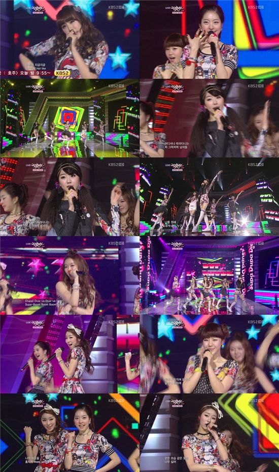 [스포츠투데이 최준용 기자]6인조 신예 걸그룹 달샤벳(비키, 세리, 아영, 지율, 가은, 수빈)이 신인답지 않은 완벽한 무대를 선사했다.달샤벳은 14일 생방송으로 진행된 KBS2 '뮤직뱅크'에 출연해 데뷔곡 '수파 두파 디바(Supa Dupa Diva)'를 공개했다.이날 무대에서 달샤벳 멤버들은 신인답지 않은 모습과 깜찍한 무대 의상으로 눈길을 사로잡았다. 여기에 달샤벳 멤버들은 특유의 상큼하고 발랄한 매력을 과시하며 신선함을 뽐냈다.달샤벳의 타이틀 곡 '수파 두파 디바(Supa Dupa Diva)'는 가요계 최고의 디바를 꿈꾸는 달샤벳 멤버들의 포부가 담겨있는 노래로, 작곡가 이트라 이브(E-TRIBE)만의 트렌디하고 세련된 멜로디가 특징이다.스포츠투데이 최준용 기자 yjchoi01@<ⓒ아시아경제 & 재밌는 뉴스, 즐거운 하루 "스포츠투데이(stoo.com)">