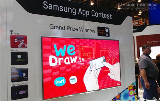 이번 콘테스트에는 3D·게임·교육·동영상·라이프 스타일·정보 제공 등 다양한 분야의 참신한 아이디어들이 쏟아졌으며, 900대1의 경쟁률을 뚫고 1위에 선정된 작품은 그림 맞추기 게임의 일종인 '위 드로(We Draw)'에게로 돌아갔다.이 앱은 혼자가 아닌 여럿이 함께 즐길 수 있는 게임으로, 플레이어가 자신의 스마트폰에 손으로 그림을 그리면 다른 플레이어들은 그 그림이 무엇인지를 추측해 맞춰 나가는 게임이다.이 앱은 거실에서 큰 화면을 통해 온 가족이 함께 편안히 즐길 수 있는 스마트 TV의 특징을 가장 잘 살렸다는 평가를 받았으며, 이 앱 개발팀에는 20만달러의 상금이 수여됐다.사진 삼성전자 블로그 제공