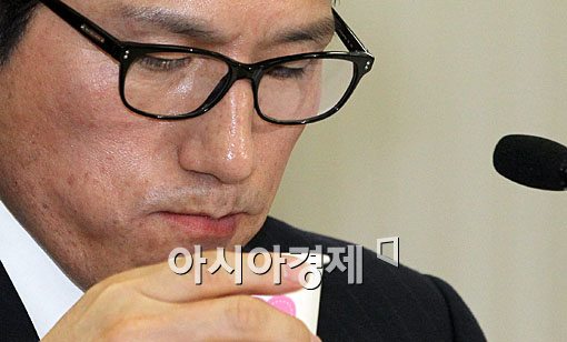 [아시아경제 윤동주 기자] 17일 서울 여의도 국회에서 열린 문화체육관광부 국무위원 후보자 인사청문회에서 정병국 후보자가 갈증이 나는듯 물을 마시고 있다.윤동주 기자 doso7@<ⓒ세계를 보는 창 경제를 보는 눈, 아시아경제(www.asiae.co.kr) 무단전재 배포금지>