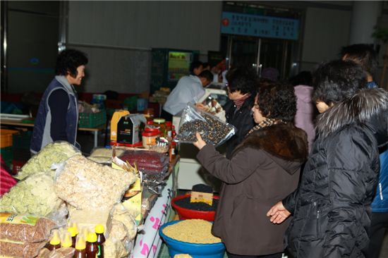 [아시아경제 박종일 기자]도봉구(구청장 이동진)는 설날을 앞두고 구민에게 우리 농수산물을 저렴한 가격에 구입할 수 있도록 26, 27일 구청지하 1층 아뜨리움에서 직거래 장터를 개장한다.직거래장터에는 무안군 진안군 함안군 남해군 등이 참여, 사과 햇밤 대추 단감 한과 표고버섯 수삼 멸치 한우 돼지고기 등 주민들에게 인기있는 품목 위주로 거래된다. 특히 직거래장터에는 지역 우수 중소기업에서 생산하는 구두 모 자 넥타이 지갑 등을 판매하는 공산품코너와 본 행사에 참여하는 시,군에서 제공하는 농특산품을 경품으로 주는 추첨행사도 준비 돼 있다.