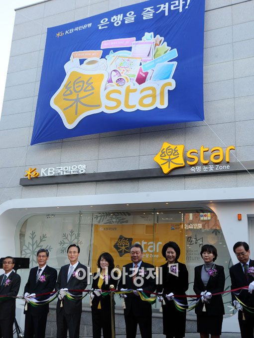 [아시아경제 윤동주 기자] KB국민은행은 20일 서울 용산구 청파동에서 대학생 전용 신개념 은행 '락 star zone'을 개점했다. 이날 개점식에 참석한 어윤대 KB금융지주 회장, 민병덕 KB국민은행장, 한영실 숙명여대 총장등 주요 인사들이 테잎컷팅식을 갖고 있다.윤동주 기자 doso7@<ⓒ세계를 보는 창 경제를 보는 눈, 아시아경제(www.asiae.co.kr) 무단전재 배포금지>