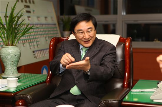 이동진 도봉구청장이 2011년 구정 운영 방안에 대해 설명하고 있다.