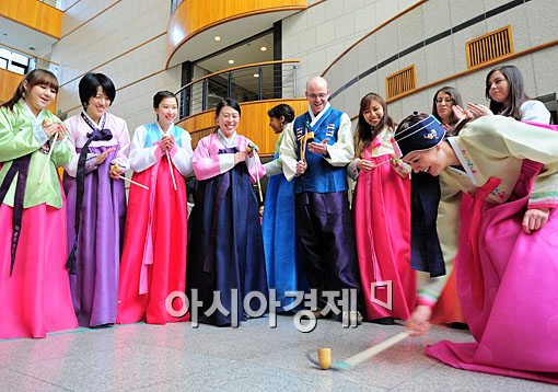 [아시아경제 윤동주 기자] 28일 서울 서대문구 이화삼성교육문화관에서 열린 '외국인 학생 설날 대잔치' 행사에 참가한 외국인 유학생들이 팽이치기를 하며 즐거운 시간을 보내고 있다.윤동주 기자 doso7@<ⓒ세계를 보는 창 경제를 보는 눈, 아시아경제(www.asiae.co.kr) 무단전재 배포금지>