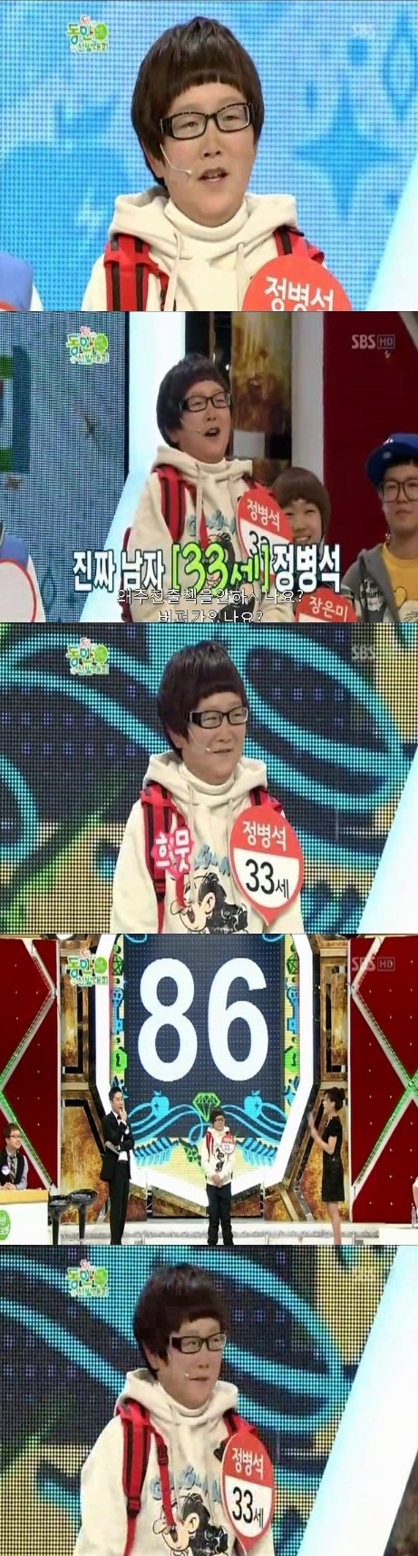 [스포츠투데이 조범자 기자]SBS '동안선발대회'에서 33세 정병석 씨가 시청자들의 눈길을 끌었다.정병석 씨는 4일 오후 방송된 '2011 동안선발대회'에 출연했다. 동그란 얼굴에 앳된 외모, 아담한 체구, 수줍은 성격으로 패널들은 남자같은 외모의 어린 여자아이일 것으로 예상했지만 뚜껑을 열어보니 33세 남성이었던 것.송은이가 여자를 확신하며 "같이 목욕탕 가자"고 했던 터라 출연자의 정체가 밝혀진 후 패널들은 그야말로 포볼절도했다.정병석 씨는 "물류센터에 근무하고 있는 엄연한 사나이 중 사나이"라며 "빨리 결혼해서 아내가 받아주는 목욕물에서 목욕을 하고 싶다"고 밝혔다.정병석 씨는 현재 86점으로 가장 높은 동안 점수를 받았다. 한편 이날 동안선발대회에서 대상을 수상한 출연자는 화장품 모델로 활약할 수 있는 기회를 얻게 된다.스포츠투데이 조범자 기자 anju1015@<ⓒ아시아경제 & 재밌는 뉴스, 즐거운 하루 "스포츠투데이(stoo.com)">