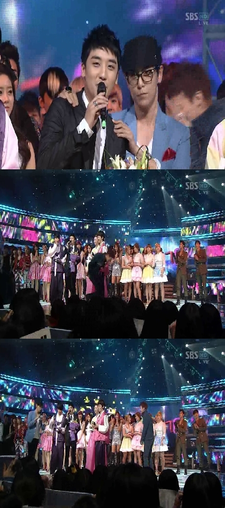[스포츠투데이 박건욱 기자]빅뱅의 멤버 승리가 SBS '인기가요'에서 1위에 해당하는 뮤티즌 송을 수상했다.승리는 6일 오후 방송한 SBS '인기가요'에서 솔로 앨범 타이틀곡 '어쩌라고'로 정상을 차지했다. 이날 GD&T.O.P, 시크릿, 엠블랙, G.NA, 나비 등을 누르고 뮤티즌 송을 수상한 승리는 "너무 감사드린다. 2011년도에는 최선을 다하고 겸손한 승리가 되겠다. 곧 빅뱅이 나온다"고 수상 소감을 전했다. 특히 승리의 수상 소감 중간에는 GD&T.O.P이 장난스런 퍼포먼스를 펼쳐 시청자들의 눈길을 끌었다. 한편 이날 방송에서는 동방신기, GD&T.O.P, 승리, 박정민, 시크릿, 엠블랙, 쥬얼리, 오렌지캬라멜, G.NA, 인피니트, 틴탑, 달샤벳, 마이티마우스, 베이지, Guy.M, 한그루, 피기돌스, 김박사, 간종욱 등이 출연해 멋진 무대를 선사했다. 스포츠투데이 박건욱 기자 kun1112@<ⓒ아시아경제 & 재밌는 뉴스, 즐거운 하루 "스포츠투데이(stoo.com)">