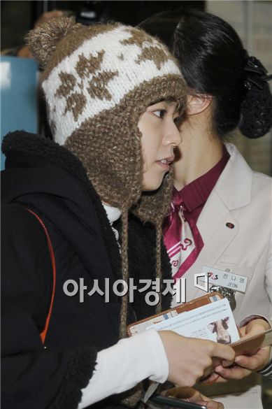 Girl group KARA member Nicole departs for Japan from Seoul, South Korea on February 3, 2011 to resume filming for their Japanese TV series "URAKARA." The five-member girl band had halted their activities after members Han Seung-yeon, Kang Ji-young and Nicole announced they will split from their agency DSP Media.Photographer : Lee Ki-bum metro83@Editor : Jessica Kim jesskim@<ⓒ10Asia All rights reserved>