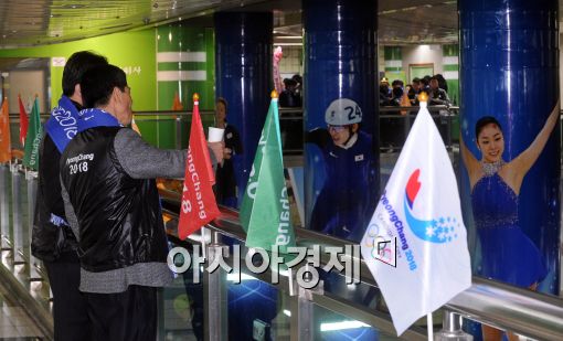 [포토]동계올림픽 홍보역으로 변신한 몽촌토성역