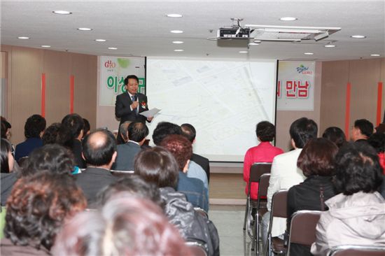 이성 구로구청장이 '주민과 대화'에서 인사말을 하고 있다.