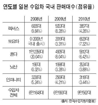 [아시아경제 이정일 기자] '한국토요타는 이미지 쇄신, 혼다코리아는 판매망 재건, 닛산코리아는 신차 효과'엔고로 깊은 시름에 빠져있는 일본 수입차들이 슬럼프 탈출을 위한 반격의 칼을 빼들었다. 엔고로 인한 수익성 악화 → 마케팅 위축 → 판매량 저하라는 악순환의 고리를 끊기 위한 '3사3색' 전략이 일본차의 자존심 회복으로 이어질지 주목된다. ◆ 이미지 쇄신 굳히는 토요타 한국토요타는 렉서스 브랜드의 한국 진출 10년을 맞는 올해를 부진 탈출의 기회로 삼겠다는 복안이다. 나카바야시 히사오 사장도 8일 열린 프리미엄 하이브리드카 CT200h 신차 발표회에서 "2011년 내실을 다지는 한 해가 되기 위해 변화와 혁신이 중요하다"며 분위기 쇄신을 강조했다. 엔고에 리콜 사태까지 겹친 렉서스는 연간 판매량이 2009년 5053대에서 2010년 3857대로 줄었다. 판매 부진보다 우려되는 것은 브랜드 이미지의 추락이다. 일본 본사가 당장의 수익보다 이미지 쇄신에 주력하라고 주문한 것도 이 때문이다. 지난 해 이례적으로 120억원의 광고 판촉비를 쏟아부은 배경이다. 작년 말 인기 배우 구혜선씨를 하이브리드 차량 '프리우스'의 홍보대사로 위촉한 것도 같은 맥락이다. 한국토요타 관계자는 "매출보다는 브랜드 재건이 시급한 올해는 지난 해보다 더욱 과감한 마케팅을 추진할 것"이라며 "카드사와 제휴를 비롯해 다양한 프로모션에도 큰 기대를 걸고 있다"고 말했다. ◆ 판매망 재정비에 나선 혼다 = 혼다코리아는 무너진 판매망을 재건하는 데 사활을 걸고 있다. 이를 위해 2년만에 홍보에서 영업으로 복귀한 박종석 상무가 전국을 돌며 영업맨들을 독려하는 강행군에 나섰다. 박 상무는 "마케팅 비용을 줄이는 등 허리띠를 졸라매는 것은 한계가 있다"며 "선택과 집중을 통한 투자로 판매 사원들의 기를 살리는 것이 시급하다"고 강조했다. 지난 1월 혼다코리아는 340대 판매로 업계 순위 7위에 그쳤다. 연간 시장 점유율도 2009년 7.39%에서 2010년 6.26%로 떨어졌다. 2008년 중반까지 1000원을 밑돌던 원-엔 환율이 1500원까지 치솟았다가 지금은 1300원대에 머무는 등 엔고에 따른 수익성 악화로 마케팅 활동이 크게 위축된 탓이다. 박 상무는 "전국의 120여명 판매사원들이 현장에서 자신감을 회복할 수 있도록 다양한 판촉활동을 계획 중"이라고 덧붙였다. 어코드 취득세 2% 지원, 3D 내비게이션과 후방 카메라 무상 제공 등이 대표적이다. 박 상무는 "차량 가격도 올려봤고 긴축 경영도 해봤지만 결국은 판매를 늘리는 것이 해법"이라며 "판매망 재건이 혼다 부활의 핵심"이라고 강조했다. ◆ 신차 효과 기대 큰 한국닛산 = 해마다 성장세를 구가하고 있는 한국닛산은 토요타와 혼다에 비하면 한결 느긋한 처지다. 닛산은 2009년 1998대 판매에서 지난 해 3524대로 무려 76% 넘게 성장했다. 인피니티도 3118대에서 3569대로 급증했다. 올해도 신차 효과가 기대된다. 닛산은 상반기 알티마 플러스에 이어 8월께 올 최고 기대작인 큐브를 선보인다. 오는 3월 열리는 서울모터쇼에는 큐브와 리프 전기차를 전시한다. 엄진환 닛산 이사는 "닛산이 국내 자동차 전시회에 참가하는 것은 이번이 처음"이라며 "판매 대리점도 6개에서 10개로 확대할 전망"이라고 밝혔다. 인피니티는 이달 출시한 3000㏄ 이하 모델 '뉴 인피니티 G25'에 기대를 걸고 있다. 지난 해 선보인 인피니티 M도 상승세를 이어가고 있어 연간 판매 목표 4000대 달성은 무난하다고 자신했다. 손창규 인피니티 전무는 "여행 중 차가 고장나면 호텔을 제공하는 등 기존의 특화된 서비스를 적극 알려 성장세를 이어가겠다"고 말했다.이정일 기자 jaylee@<ⓒ세계를 보는 창 경제를 보는 눈, 아시아경제(www.asiae.co.kr) 무단전재 배포금지>