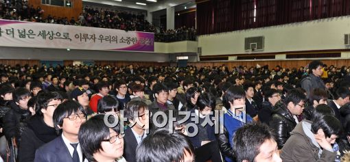 [아시아경제 이재문 기자]11일 오후 서울 대방동 서울공고 졸업식에서 졸업생들이 김황식 국무총리의 축사를 경청하고 있다.이재문 기자 moon@<ⓒ세계를 보는 창 경제를 보는 눈, 아시아경제(www.asiae.co.kr) 무단전재 배포금지>