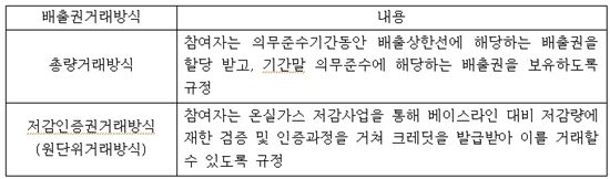 대체로, 총량거래방식은 저감인증거래방식에 비해 명료하고, 저감 효과에 있어 장점을 가지고 있는 반면, 성장기에 있는 개도국에게는 불리할 수 있다. 일률적인 배출상한(Cap)을 적용한다는 것이 미래의 성장 수요를 충족시키지 못하게 만들 수 있고, 대외경쟁력 차원에서 불리할 수 있기 때문이다.원단위거래방식은 총량거래방식과 비교할 때 기업 입장에서 예측하지 못한 배출량의 변화를 수용하는 것이 유리하며, 에너지효율 개선이 성숙한 단계에 있는 국가나 산업에서는 보다 현실적인 대안이 될 수 있다. 다만 원단위거래방식은 사후 보정이 필요하므로 복잡한 행정과정을 감수해야 한다.(현대선물(주) 금융공학팀 김태선 부장 제공)정재우 기자 jjw@<ⓒ세계를 보는 창 경제를 보는 눈, 아시아경제(www.asiae.co.kr) 무단전재 배포금지>정재우 기자 jjw@<ⓒ아시아 대표 석간 '아시아경제' (www.newsva.co.kr) 무단전재 배포금지>