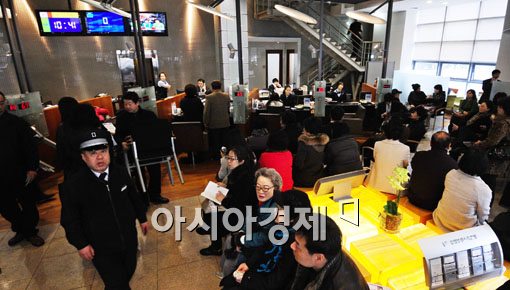 [아시아경제 윤동주 기자] 17일 대전저축은행과 부산저축은행에 대해 영업정지가 내려진 가운데 부산저축은행 계열사 은행인 중앙부산저축은행 서울지점에 많은 고객들이 예금을 인출하기 위해 몰려 있다.윤동주 기자 doso7@<ⓒ세계를 보는 창 경제를 보는 눈, 아시아경제(www.asiae.co.kr) 무단전재 배포금지>