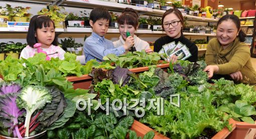 [아시아경제 이재문 기자]신세계 이마트가 21일 서울 황학동 청계천점에서 폭설과 강추위 등 날씨의 영향으로 인한 신선식품 고물가시대에 대비해 가정에서 상추, 치커리 등 채소류를 직접 길러먹을 수 있는 '가정텃밭세트'를 선보이고 있다. 가정용 텃밭세트는 화분과 채소전용배양토, 마사토, 씨앗이 모두 포함, 1만4900원에 판매한다. 이재문 기자 moon@<ⓒ세계를 보는 창 경제를 보는 눈, 아시아경제(www.asiae.co.kr) 무단전재 배포금지>