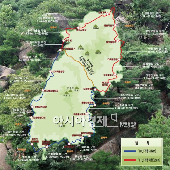 [아시아경제 김승미 기자] 문을 연 지 3개월만에 100만명이 넘게 찾은 북한산 둘레길 나머지 구간이 올해 상반기내로 새로 조성된다.국립공원관리공단(이사장 엄홍우)는 작년에 도봉산 둘레길 26km를 상반기 중에 조성해 전체 70km를 완공한다고 24일 밝혔다.