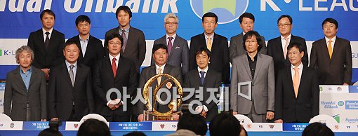 [스포츠투데이 이기범 기자]24일 오후 서울 홍은동 그랜드힐튼호텔에서 열린 '현대오일뱅크 K리그 2011 개막 기자회견'에서 15개팀 감독들이 포토타임을 갖고 있다.스포츠투데이 이기범 기자 metro83@<ⓒ아시아경제 & 재밌는 뉴스, 즐거운 하루 "스포츠투데이(stoo.com)">