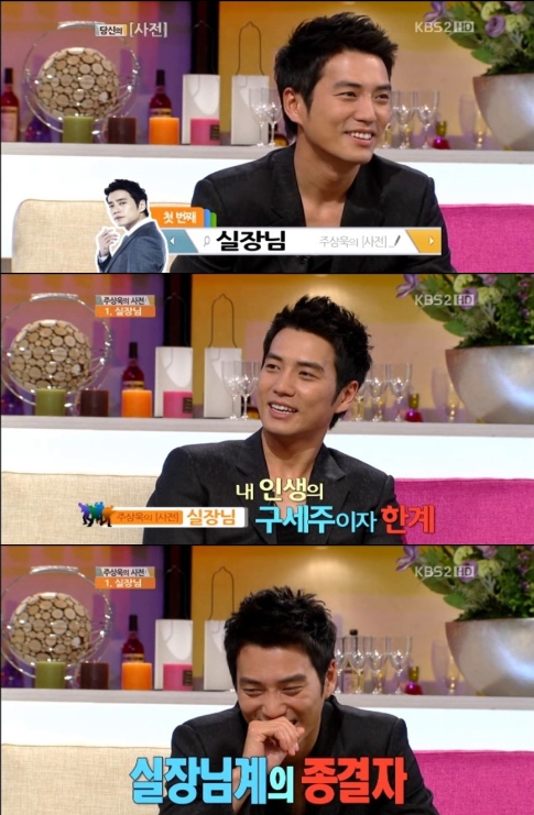 [스포츠투데이 고경석 기자]배우 주상욱이 '실장님' 캐릭터 연기에 한계를 느꼈다고 털어놨다.주상욱은 1일 오후 방송된 KBS2 토크쇼 '승승장구'에 출연해 '실장님' 캐릭터에 대해 "내 인생의 구세주이자 한계"라고 정의했다. 그는 2007년 '깍두기', 2008년 '아빠 셋 엄마 하나' '춘자네 경사났네', 2009년 '그저 바라보다가', 2010년 '자이언트' 등에서 '실장님' 역할로 출연했다.그는 이에 대해 "이렇게 반복적으로 연기하는 것이 실장님의 한계가 아닐까 생각했다"면서 "드라마 속 실장님은 외모 반듯하고 모든 걸 다 갖춘 남자이고 사랑하는 여자는 불쌍한 처지에 있다. 당연히 부모가 반대하고 속상한 마음에 고뇌하며 샤워를 한다"고 말해 웃음을 자아냈다.이어 "실장님 연기를 하도 하다 보니까 이제 할 것이 없다. 한계에 다다른 것 같다"고 말했다. 한편 이날 방송에는 특별 손님으로 주상욱과 함께 연기했던 박신혜가 출연했다.스포츠투데이 고경석 기자 kave@<ⓒ아시아경제 & 재밌는 뉴스, 즐거운 하루 "스포츠투데이(stoo.com)">