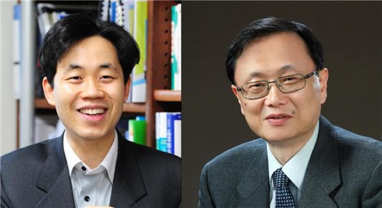 (왼쪽부터) 이상욱 건국대 물리학과 교수, 박영우 서울대 한-스웨덴 탄소기반나노구조 연구센터 교수 <br />