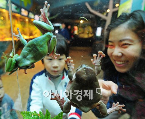[아시아경제 윤동주 기자] 개구리가 깨어난다는 경칩을 앞두고 2일 서울 여의도 63씨월드에서 열린 '개구리 경칩전'을 찾은 관람객들이 블루화이트, 판타지 팩맨 등 희귀개구리등을 보고 즐거워 하고 있다.윤동주 기자 doso7@<ⓒ세계를 보는 창 경제를 보는 눈, 아시아경제(www.asiae.co.kr) 무단전재 배포금지>