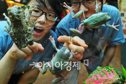 [아시아경제 윤동주 기자] 개구리가 깨어난다는 경칩을 앞두고 2일 서울 여의도 63씨월드에서 열린 '개구리 경칩전'을 찾은 관람객들이 블루화이트, 판타지 팩맨 등 희귀개구리등을 보고 즐거워 하고 있다.윤동주 기자 doso7@<ⓒ세계를 보는 창 경제를 보는 눈, 아시아경제(www.asiae.co.kr) 무단전재 배포금지>