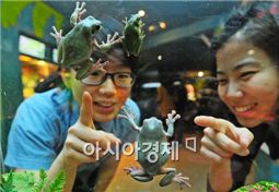 [아시아경제 윤동주 기자] 개구리가 깨어난다는 경칩을 앞두고 2일 서울 여의도 63씨월드에서 열린 '개구리 경칩전'을 찾은 관람객들이 블루화이트, 판타지 팩맨 등 희귀개구리를 보고 즐거워 하고 있다.윤동주 기자 doso7@<ⓒ세계를 보는 창 경제를 보는 눈, 아시아경제(www.asiae.co.kr) 무단전재 배포금지>