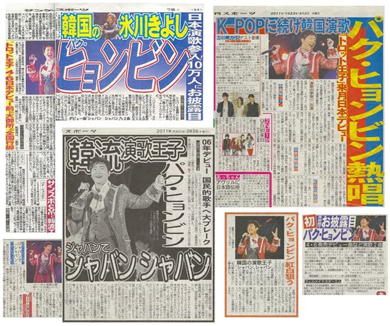 [스포츠투데이 조범자 기자]일본 언론이 '트로트 프린스' 박현빈에 뜨거운 시선을 보내고 있다. 본격 데뷔도 하기 전에 박현빈의 일본 진출을 일본 주요 언론들이 빠짐없이 보도하고 나선 것. 닛칸스포츠와 스포츠호치, 산케이스포츠, 데일리스포츠, 도쿄주니치스포츠, 스포니치 등 도쿄 지역의 스포츠지들은 3일 일제히 박현빈 기사를 보도했다. 특히 닛칸스포츠는 지면 한 면의 절반 이상을 할애해 박현빈의 기사를 실었고 스포츠호치나 산케이스포츠 등 다른 신문들도 대부분 지면 톱기사로 다루며 한국 ‘트로트 왕자’의 일본 진출에 비상한 관심을 쏟았다.이날 보도들은 박현빈의 일본 진출과 현재 참가 중인 일본 최대 음악 축제 ‘엔카 유메노 마츠리(엔카 꿈의 축제)’에 대한 인터뷰로 이뤄져 있다. 박현빈은 오는 4월 6일 일본 데뷔 싱글 ‘샤방샤방’(일본어 버전) 발표를 앞두고 있다. 일본 엔카 최고 가수들이 참가하고 일본 주요 5개 도시를 돌며 연인원 10만 명이 관람하는 ‘엔카 유메노 마츠리’ 투어에서 공연을 펼치며 점점 많은 일본팬들을 확보해 가고 있다.박현빈은 각 신문사와의 인터뷰에서 정식 데뷔 전 일본 최고의 엔카 무대인 ‘엔카 유메노 마츠리’에 서는 소감, 데뷔 싱글 ‘샤방샤방’의 뜻, 한국과 일본 활동의 다른 점, 일본어 공부 상황 등을 설명했다. 특히 일본 진출 목표를 묻는 질문에는 “’홍백가합전’ 무대에 서고 싶고 일본에서 단독 콘서트를 열 수 있도록 최선을 다하겠다”는 당찬 포부를 밝혔다.박현빈은 지난해 10월 일본 최대 한류 매니지먼트사인 ㈜어빙과 계약을 맺고 본격적인 일본 진출 준비에 들어갔다. 류시원 권상우 정우성 등의 일본 매니지먼트를 담당하는 어빙에 이어 음반 유통 역시 일본 최대 음반사인 소니 뮤직이 가세하는 등 강력한 지원을 받으며 일본 시장 진출을 시작했다.