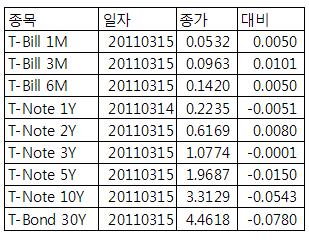 [표] 미 채권 수익률