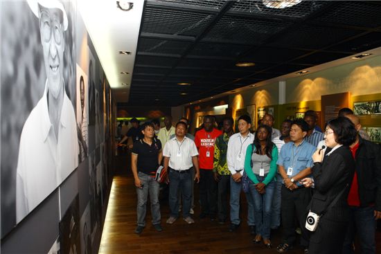 2010년 6월 코이카(KOICA) 주관 가나안 세계지도자과정에 참석한 외국인 학생들이 현대중공업 아산기념전시관을 방문해 정주영 명예회장에 대한 설명을 듣고 있다.