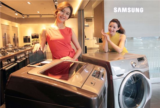 [아시아경제 박성호 기자]삼성전자가 세탁 시장의 패러다임을 바꿀 신제품 2011년형 드럼 세탁기 '버블샷' 12종과 전자동 세탁기 '워블' 7종 등 총 19종의 신제품을 선보였다. 삼성전자는 업계 최초로 세탁시간을 40분대로 줄인 '버블샷' 드럼 세탁기는 기존 삼성전자만의 버블 세탁 방식에 위에서 쏟아지는 강력한 워터샷을 추가해 세탁력과 헹굼력을 향상시켰다.