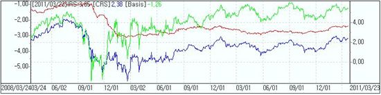 23일 스왑시장에 따르면 IRS가 전구간에서 2~2.5bp씩 하락했다. 오전중에는 1~2.5bp씩 상승세를 보인바 있다. IRS 1년물과 5년물이 각각 전장대비 2.5bp씩 내린 3.65%와 4.09%를, 3년물이 2bp 내려 3.94%를 기록했다.본드스왑은 오전장 타이튼에서 구간별혼조세로 마감했다. 1년물이 전장 8bp에서 7bp를, 10년물이 어제 -16bp에서 -17bp를 보이며 벌어졌다. 반면, 2년물이 전일 11bp에서 12bp로, 3년물이 전장 26bp에서 28bp로, 5년물은 전일 파에서 1bp로 좁혀졌다.CRS는 전구간에서 1.5~4bp씩 하락했다. CRS 1년물이 전일비 4bp 떨어진 2.38%를, 3년물이 3.5bp 내린 2.71%를, 5년물이 1.5bp 내려 3.05%를 보였다.스왑베이시스는 3년이하 구간에서 1~2bp 가량 늘어 축소하루만에 확대반전했다. 1년물이 전장 -125bp에서 -126bp를, 3년물이 전일 -121bp에서 -122bp를 기록했다. 반면 5년물은 -105bp에서 -104bp로, 10년물은 전장 -95bp에서 -94bp로 오히려 좁혀졌다.외국계은행의 한 스왑딜러는 “IRS금리가 장막판 선물상승 영향으로 하락반전했다. 커브변화는 없었다. 다만 역외비드가 많이 나왔다. CRS금리도 살짝 하락했다. 원·달러환율이 4거래일만에 반등했고, 유로와 엔화도 불안한 움직임을 보인데다 미국채금리도 하락세를 보였기 때문”이라고 전했다.그는 “전일까지 증시가 반등하는등 회복국면을 보였지만 장밋빛만을 기대하기에는 부담스러워 보인다. 글로벌 환율이 불안한 움직임을 보인데다 전일 미증시 막판 약세에 금일 니케이와 코스피도 후반 약세반전했다”며 “안전자산선호심리로 턴을 할만한 이벤트가 있을지에 대해 주목해볼 시점”이라고 덧붙였다.또다른 외국계은행 스왑딜러는 “일본강진이후 급변동 장세속에 시달린터라 동력없이 소강상태를 보였다. 상대적으로 큰 이슈가 없는 요며칠인듯 싶다”며 “국고3년물 기준 3.7%대는 지지되는 느낌이다. 현선물저평도 있어 외국인도 딱히 매도로 도는 기세가 보이질 않았다. IRS시장에 페이가 나왔지만 전일에 비해서는 조용해진듯 싶다. 최근 강세장속 스왑커브가 플래트닝됐지만 추가로 밀고 내려가기에는 부담스러워 보인다”고 말했다.그는 “CRS도 큰 움직임이 없었다. 수출업체에서 포워드선물환 물량을 타진하는듯 했다. 본드크로스1년물이 -120bp 수준이어서 헤지레벨이 좀 애매한듯해 레벨을 관망하는 모습이었다”며 “다만 글로벌환율과 증시등 움직임이 심상치 않아 오늘내일사이 뭔가가 있을지 지켜볼 필요가 있겠다”고 밝혔다.김남현 기자 nhkim@<ⓒ세계를 보는 창 경제를 보는 눈, 아시아경제(www.asiae.co.kr) 무단전재 배포금지>김남현 기자 nhkim@<ⓒ아시아 대표 석간 '아시아경제' (www.newsva.co.kr) 무단전재 배포금지>